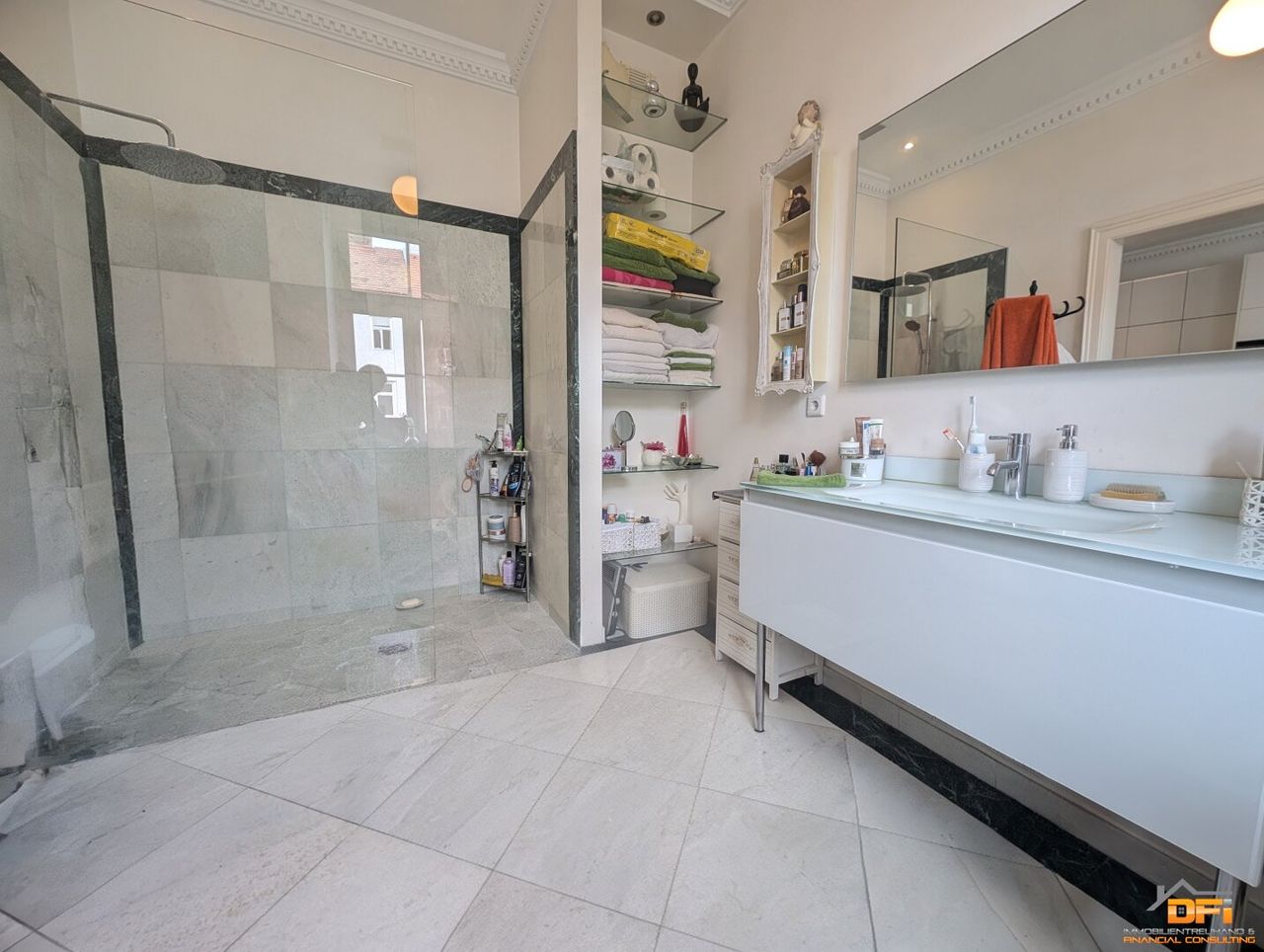 Bad mit Dusche, WC und Waschmaschinenanschluss: Das Badezimmer ist modern verfliest und verfügt über eine sehr geräumige Dusche.