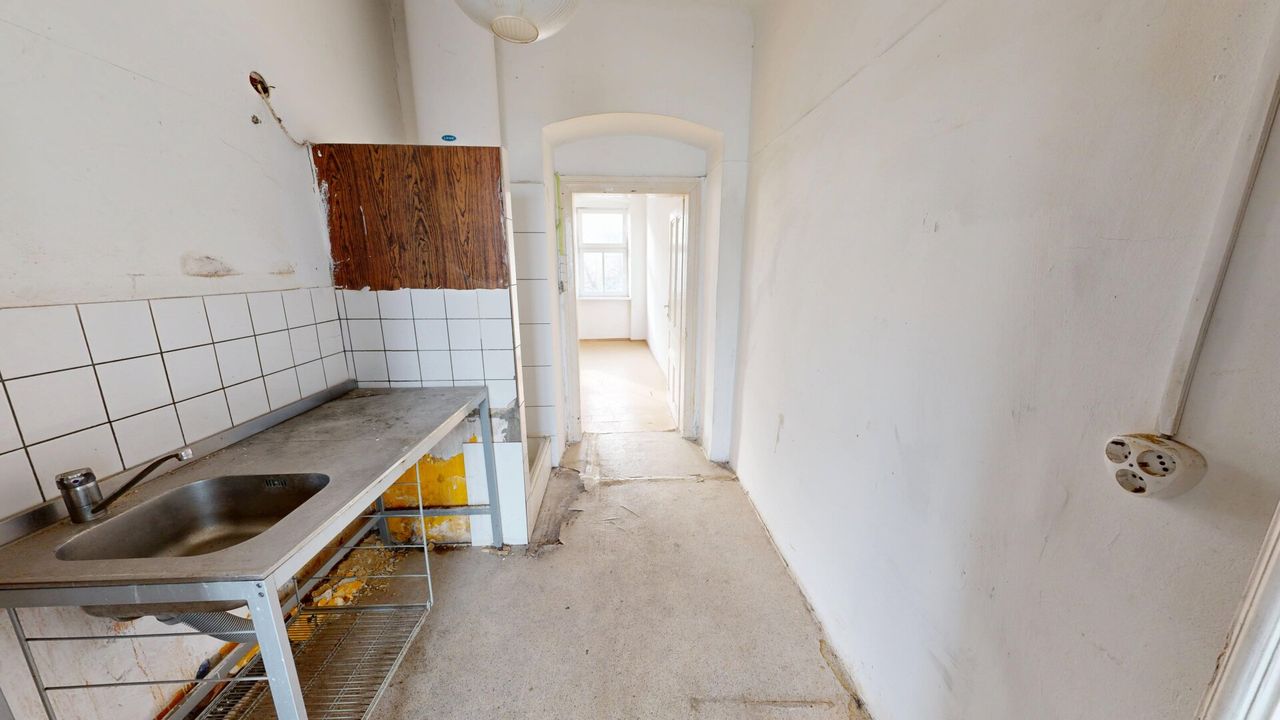 Die Wohnung stellt eine ideale Grundlage für eine umfassende Sanierung dar. Dadurch haben zukünftige Eigentümer die Möglichkeit, Raumaufteilung, Materialien und Ausstattung ganz individuell zu planen und umzusetzen. Besonders hervorzuheben ist die Südausrichtung der Räume, die für viel Tageslicht sorgt und eine helle, freundliche Wohnatmosphäre schafft. So kann hier Schritt für Schritt ein persönliches Zuhause mit Altbaucharme und modernem Wohnkomfort entstehen.