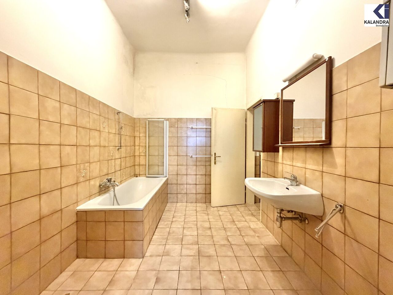 Das Bad liegt hinter dem Schlafzimmer und ist nur von diesem zugänglich.