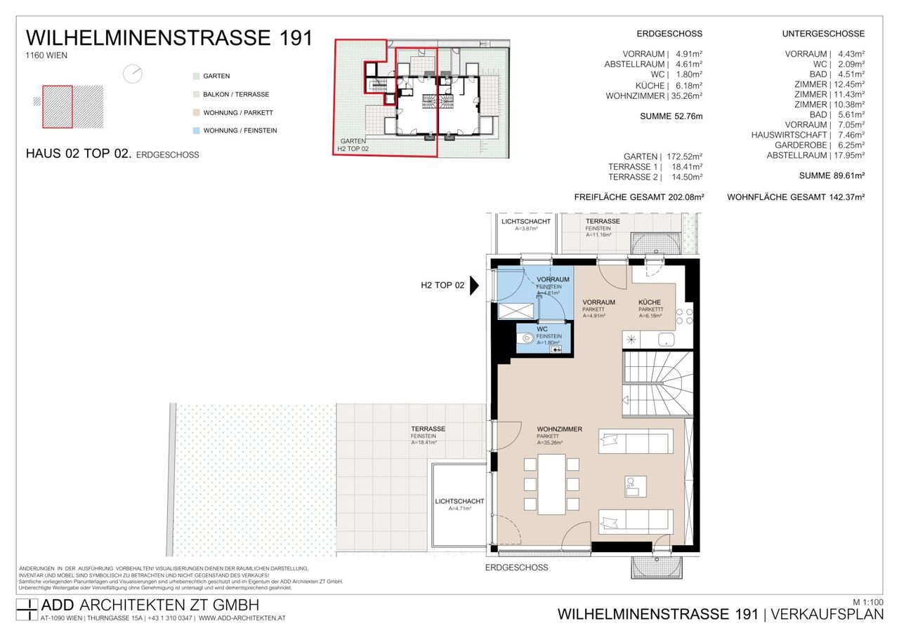 Die Planung und Konzeption des Gesamtprojektes wird nach den neuesten ökologischen Richtlinien barrierefrei ausgeführt und es werde nur modernste Baumaterialien sowie Ausstattungselemente ausgewählt, die im Innen- und Außenbereich ein maximales Wohnvergnügen dauerhaft garantieren. Auch Energietechnisch wurde auf dem neusten Stand geplant: Luftwärmepumpe mit Pufferspeicher, PV-Anlage und Fußbodenheizung mit integrierter Kühlfunktion zur Grundtemperierung.