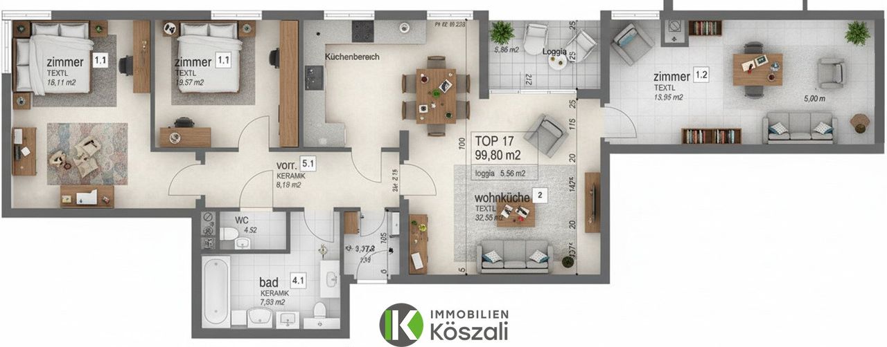 In wirklich seltener Villenlage empfängt diese gepflegte 4-Zimmer-Wohnung ihre neuen Bewohner. Sie bietet Ihnen und Ihrer Familie den perfekten Rückzugsort, kombiniert mit der Nähe zur pulsierenden Stadt. Mit einer großzügigen Fläche von 99,8 m² plus einer Loggia mit 5,55 m2 finden Sie hier ausreichend Platz zum Entspannen und Wohlfühlen.