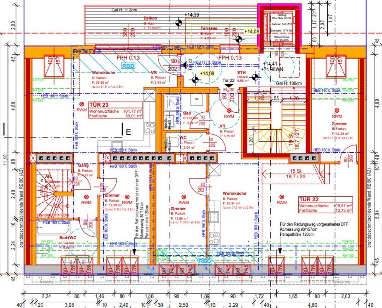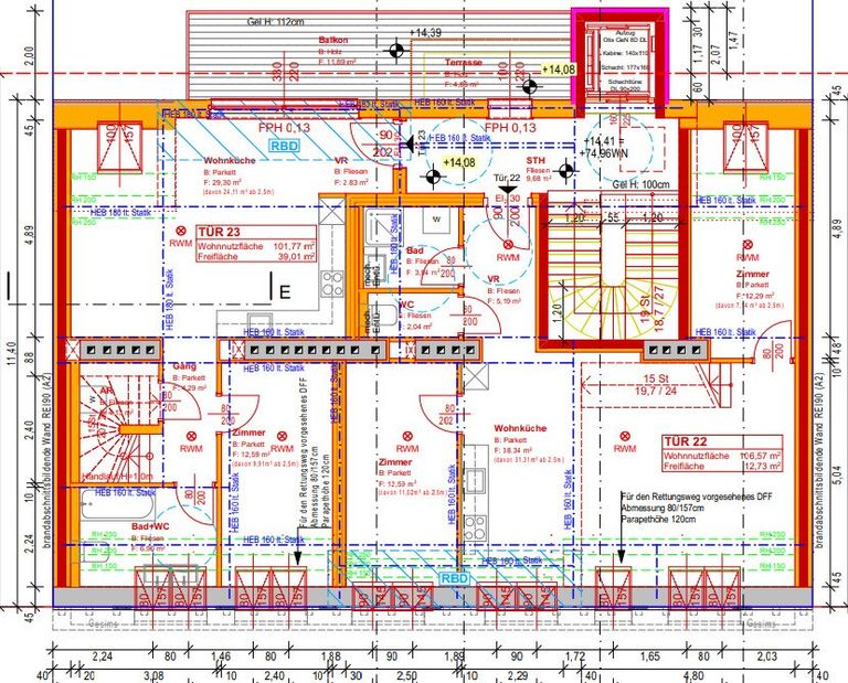 - Top 23: ca. 101,77 m² WNF + ca. 39,01 m² Terrasse (4 Zimmer)