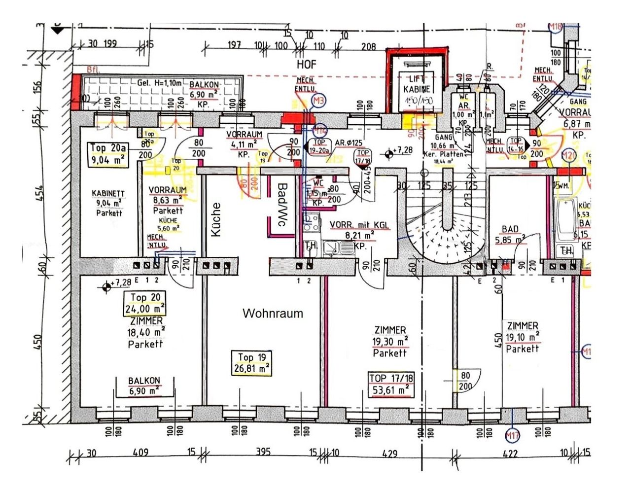 Die Einheiten 19 und 20 sind zusammen parifiziert, es gehört auch ein gemeinsamer Vorraum dazu, der zur Wohnung 19-20 parifiziert ist.
