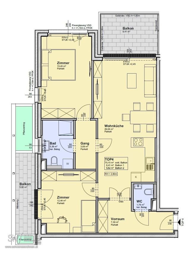 TOP 4: 3 Zimmer | 75,15 m² | 8,41 m² Balkon + 5,82 m² Balkon | € 697.000,-