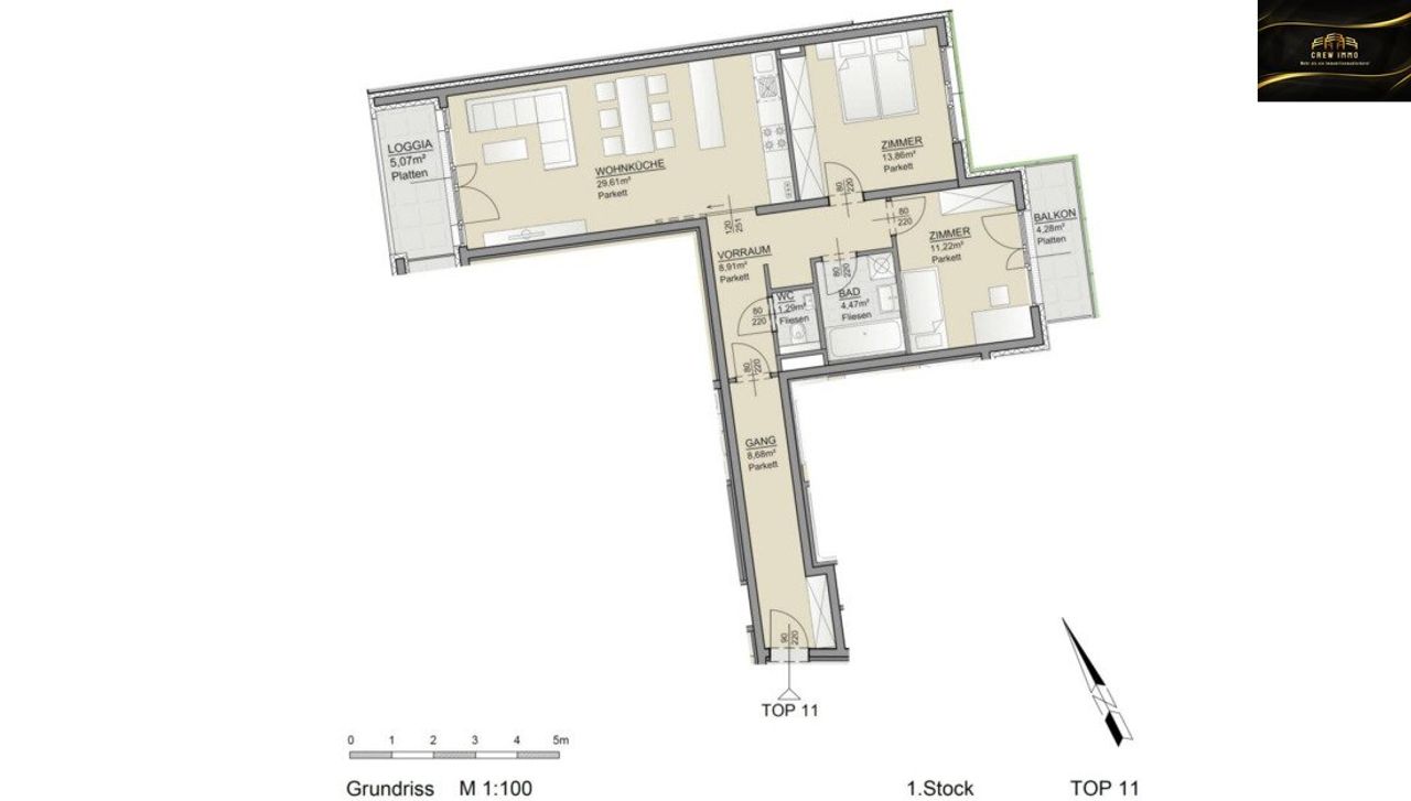 Mit einer großzügigen Fläche von 78,04 m² und drei lichtdurchfluteten Zimmern ist sie perfekt für Paare, kleine Familien oder als Investition in die Zukunft.