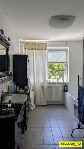 - BADEZIMMER: Waschbecken und Dusche, Badewanne