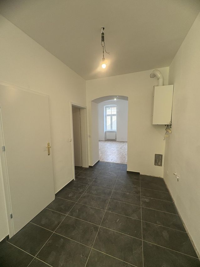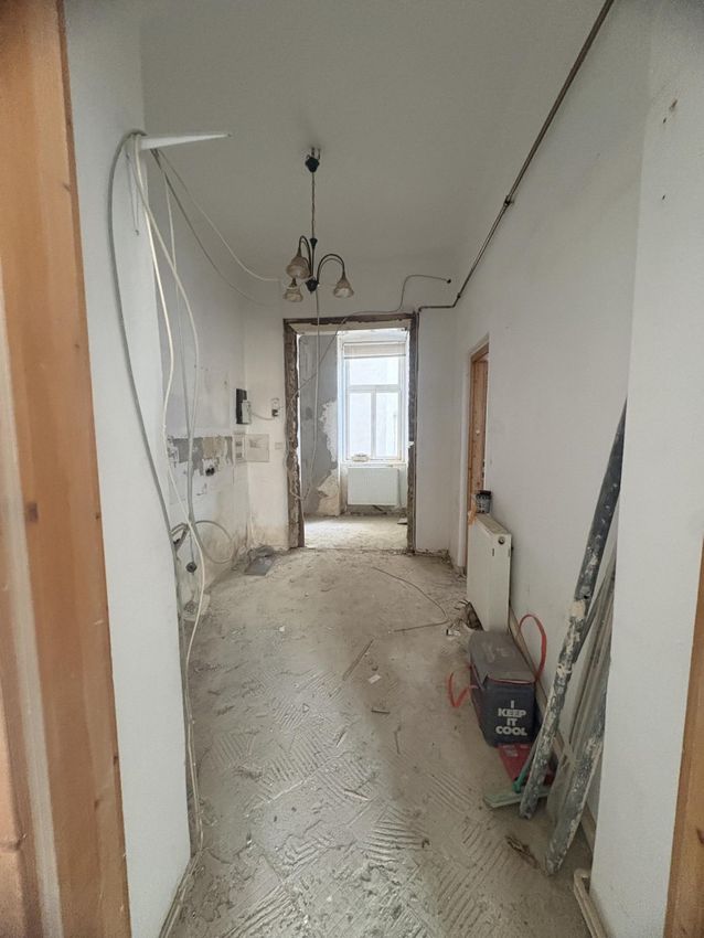Derzeit stehen keine offiziellen Fotos der Wohnung zur Verfügung, da sich diese momentan in einem entsprechenden renovierungsbedürftigen Zustand befindet. Die im Inserat verwendeten Bilder zeigen eine vergleichbare Wohnung im 2. Stock desselben Hauses, die über eine nahezu identische Wohnfläche und einen sehr ähnlichen Grundriss verfügt. Lediglich das Vorzimmer wurde dort bereits etwas verändert bzw. Erweitert. Zusätzlich dient ein Musterfoto aus einer Wohnung im 1. Stock, welche bereits vollständig renoviert wurde, als Beispiel dafür, wie die Wohnung nach einer Sanierung aussehen kann.