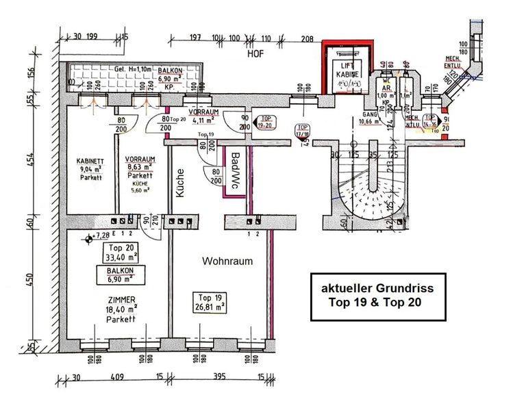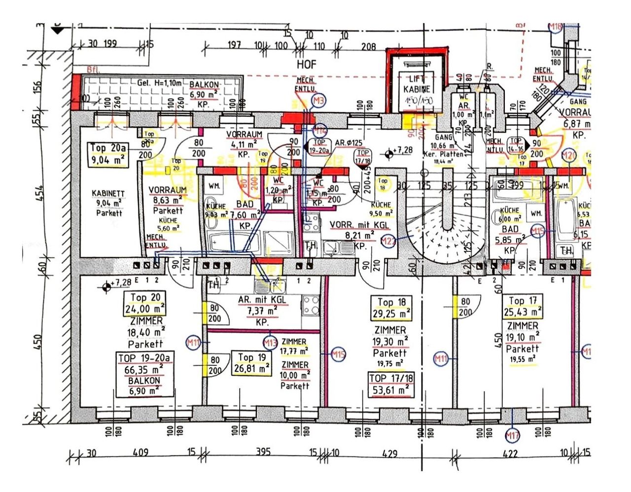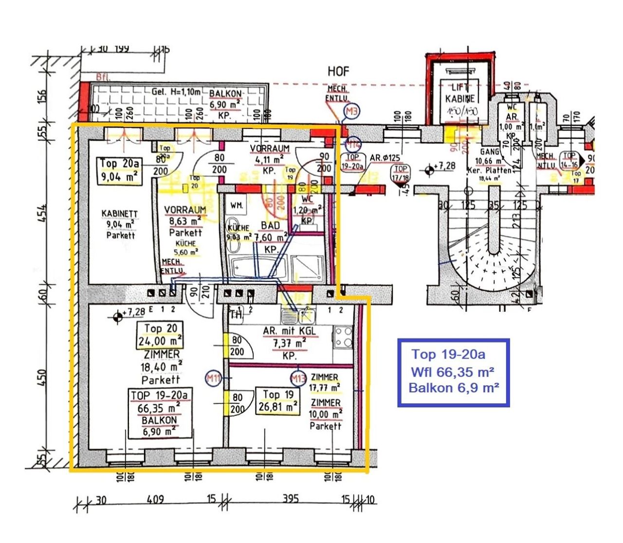 Die Einheiten 19 und 20/20a sind zusammen Parifiziert, es gehört auch ein gemeinsamer Vorraum dazu, der zur Wohnung 19-20 Parifiziert ist.