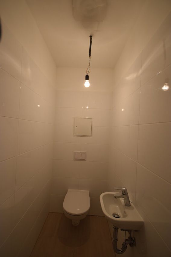 Über den Eingangsbereich gelangt man zum Vorzimmer, welches L- förmig geschnitten ist. Ausgehend davon liegt auf der linken Seite das separate WC und direkt angrenzend auf der selben Seite das Badezimmer mit Wanne.