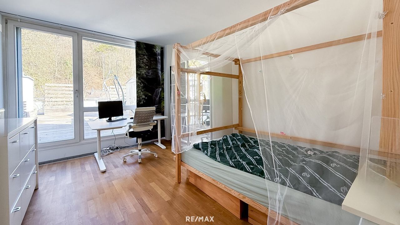 Fünf vielseitig nutzbare Zimmer bieten ausreichend Platz für Kinderzimmer, Homeoffice oder Gästezimmer. Zwei modern ausgestattete Badezimmer – jeweils mit Fenster – verfügen über Badewanne und Dusche und garantieren Komfort im Alltag.