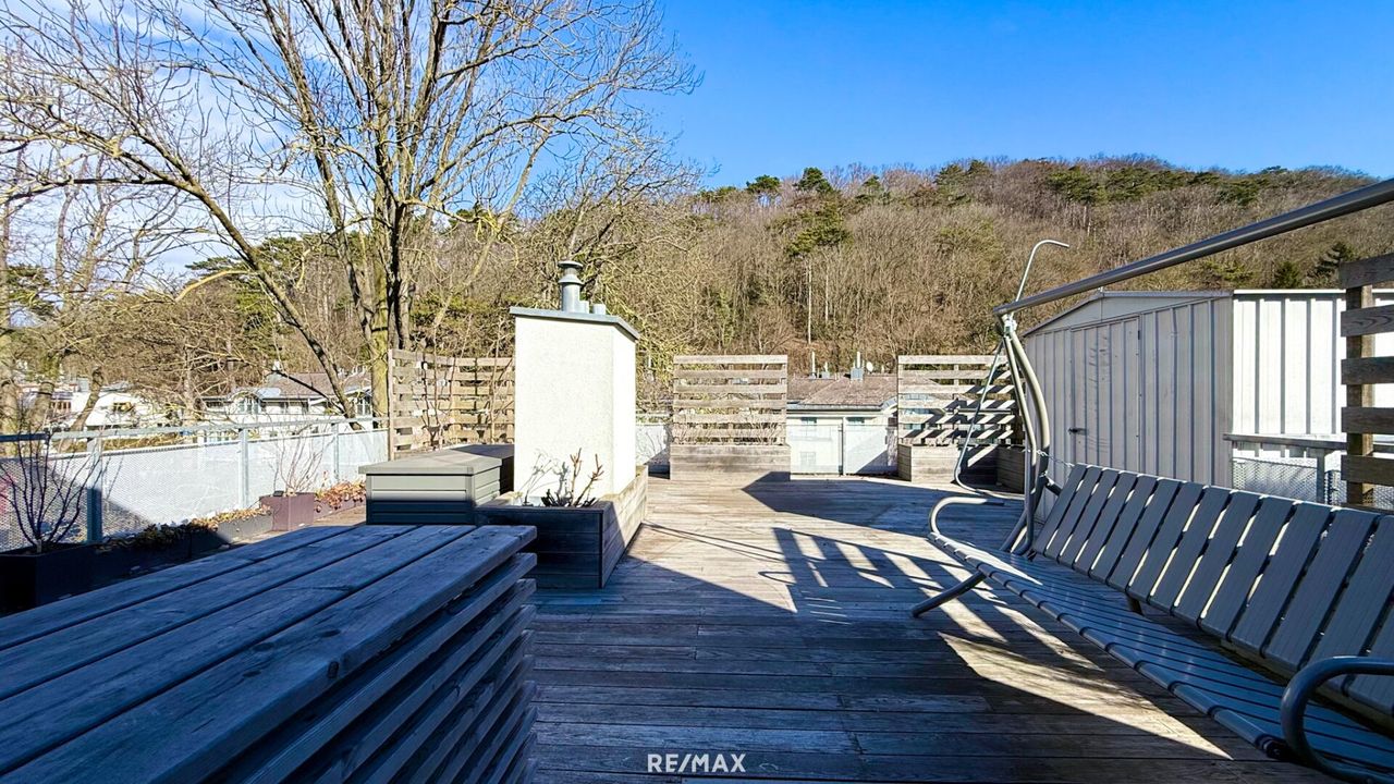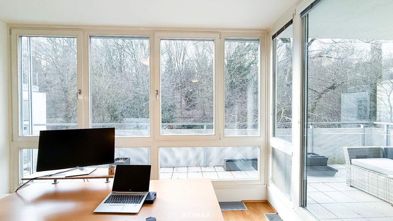 Zwei großzügige Terrassen, teils mit direktem Blick in den Wald, sowie ein zusätzlicher Balkon erweitern den Wohnraum ins Freie. Genießen Sie entspannte Stunden im Grünen, Frühstück an der frischen Luft oder laue Sommerabende mit Blick ins Grüne – hier wird Lebensqualität spürbar.