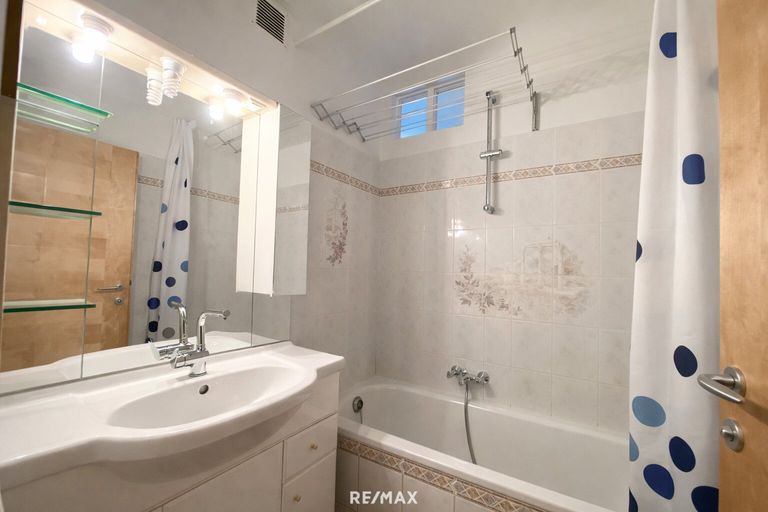 Man betritt die Wohnung und befindet sich im Vorraum mit Garderobenbereich, der ausreichend Platz für Stauraum bietet. Direkt links befindet sich das separate WC, daneben das Badezimmer mit Badewanne und integrierter Duschvorrichtung.