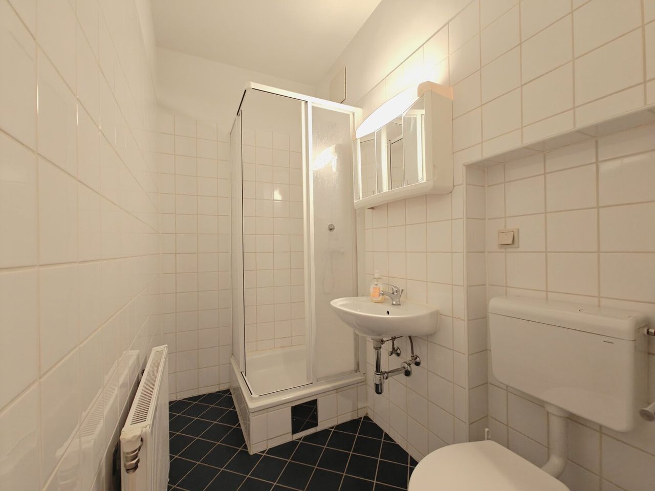 + Badezimmer mit Waschbecken, Dusche und WC