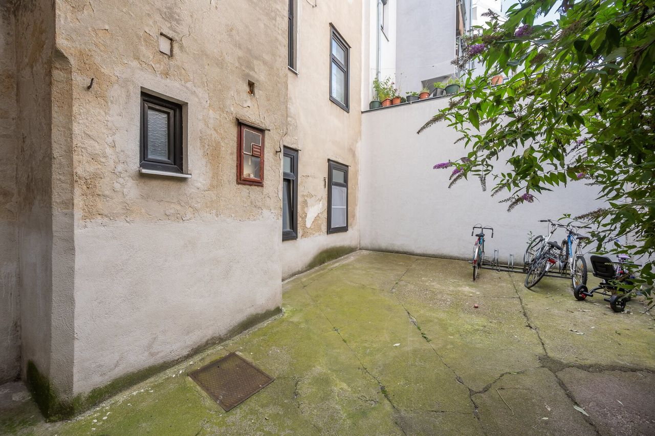 Die Wohnung verfügt derzeit über kein WC, kein zeitgemäßes Badezimmer und keine Heizung!