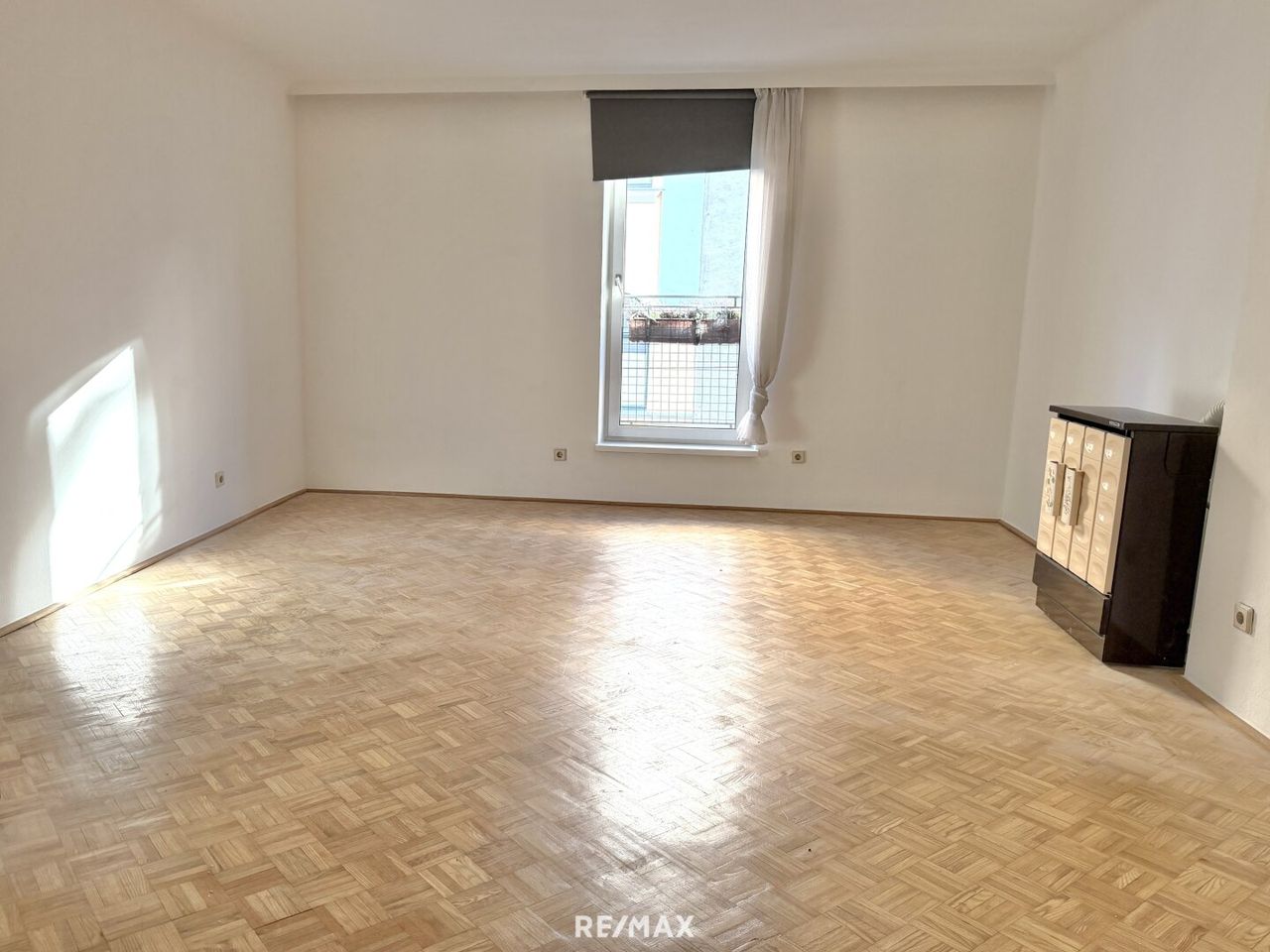 Das Wohn-/Schlafzimmer überzeugt durch seinen gut nutzbaren Grundriss, eine gemütliche Schlafnische sowie einen Gas-Konvektor-Ofen. Die separate Küche bietet ausreichend Platz für eine kleine Essecke und präsentiert sich hell und freundlich. Beide Räume sind mit klassischem Stäbchenparkett ausgestattet.