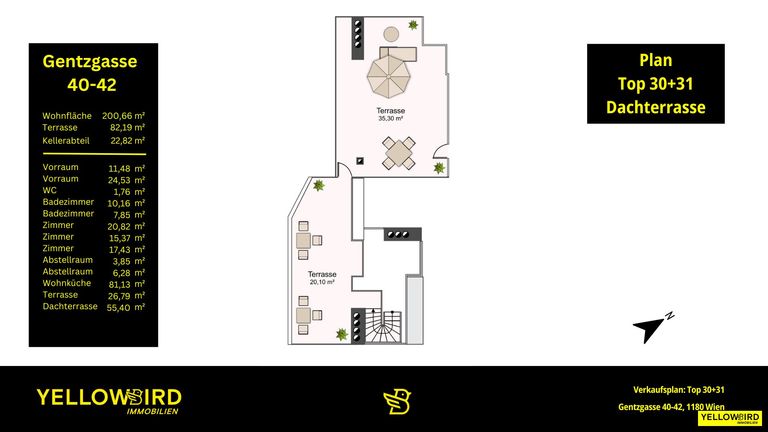 - Terrasse mit 83 m², Nord-Ausrichtung