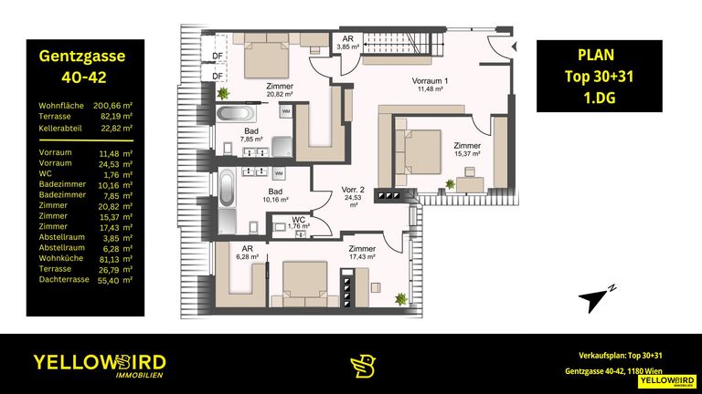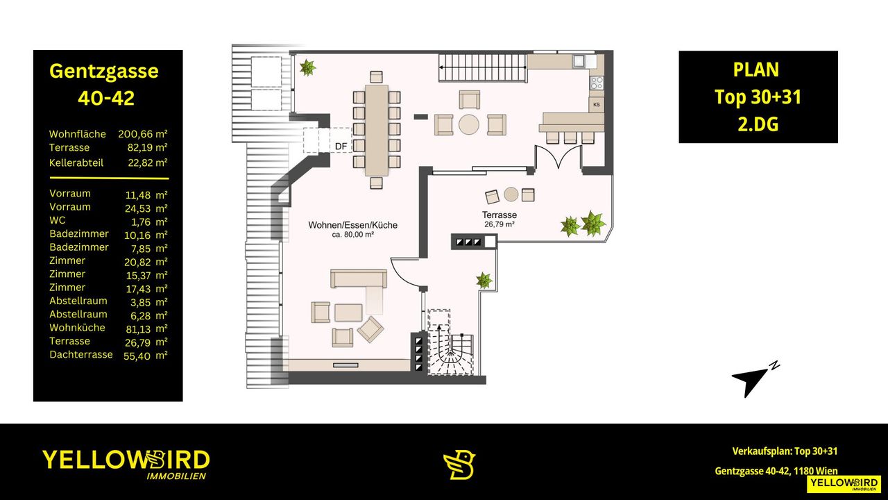 In bester Lage der Gentzgasse 40–42, nur wenige Schritte vom Kutschkermarkt entfernt, entsteht durch die Zusammenlegung zweier Einheiten eine großzügige Dachgeschoss-Maisonette im Erstbezug. Die bauliche Maßnahme der Zusammenlegung beläuft sich auf EUR 50.000. Das durchdachte Raumkonzept bietet zahlreiche Zimmer und eignet sich ideal für Familien, Homeoffice oder flexibles Wohnen auf zwei Ebenen. Luftwärmepumpe, Fußbodenheizung und Klimaanlage sorgen ganzjährig für modernen Wohnkomfort, ergänzt durch eine großzügige Dachterrasse mit Blick über ganz Wien.