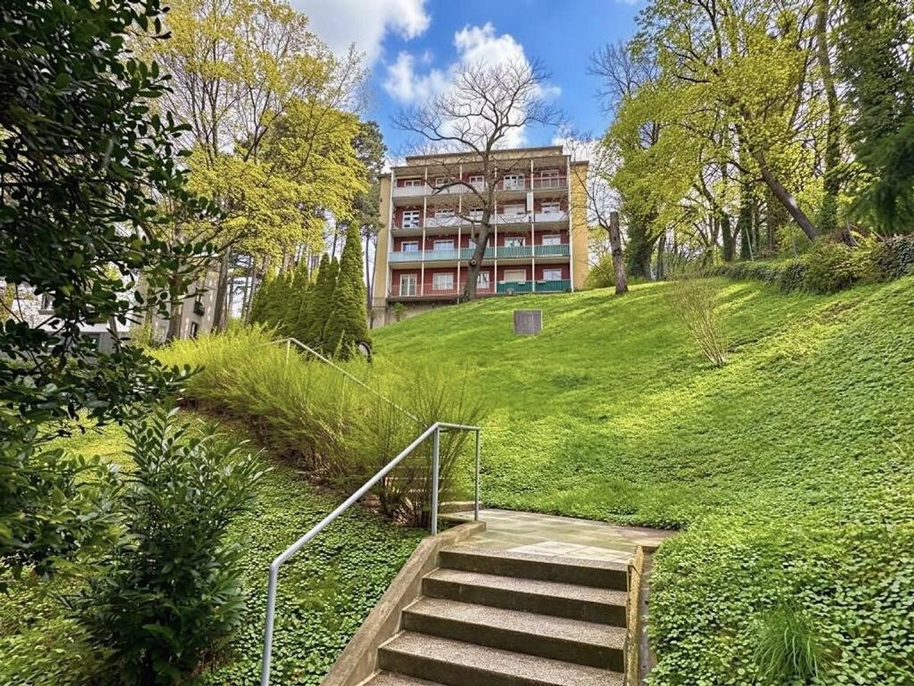 Die Wohnung befindet sich in erhöhter Position im Haus 2 und ist über eine Treppenanlage erreichbar. Dies sorgt für die außergewöhnliche Ruhe, den freien Ausblick und die besondere Wohnqualität – ideal für aktive und sportliche Personen, die genau diese Vorteile zu schätzen wissen.