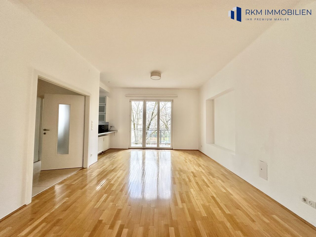 Die Wohnung verfügt über einen einladenden Vorraum, einen Garderobenbereich, eine komplett ausgestattete Küche inklusive Doppeltür-Kühlschrank und leistungsstarker Dunstabzugshaube, ein großes Wohnzimmer mit Balkon in den Innenhof sowie einem französischen Balkon zum Platz hin, drei Schlafzimmer und zwei Badezimmer mit WC.