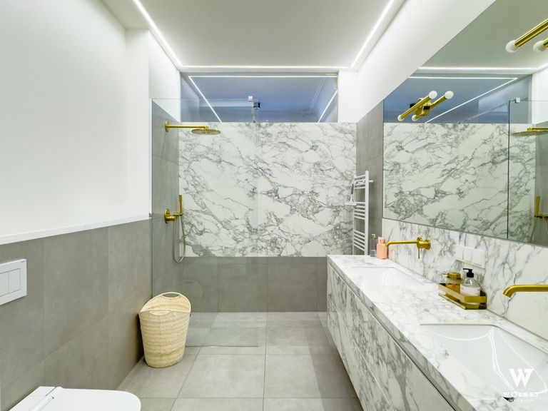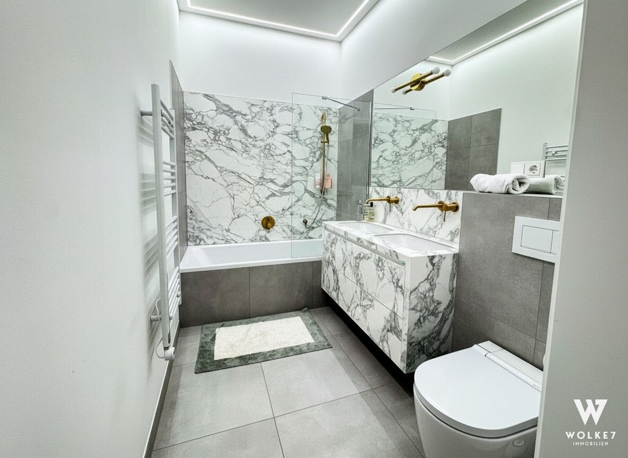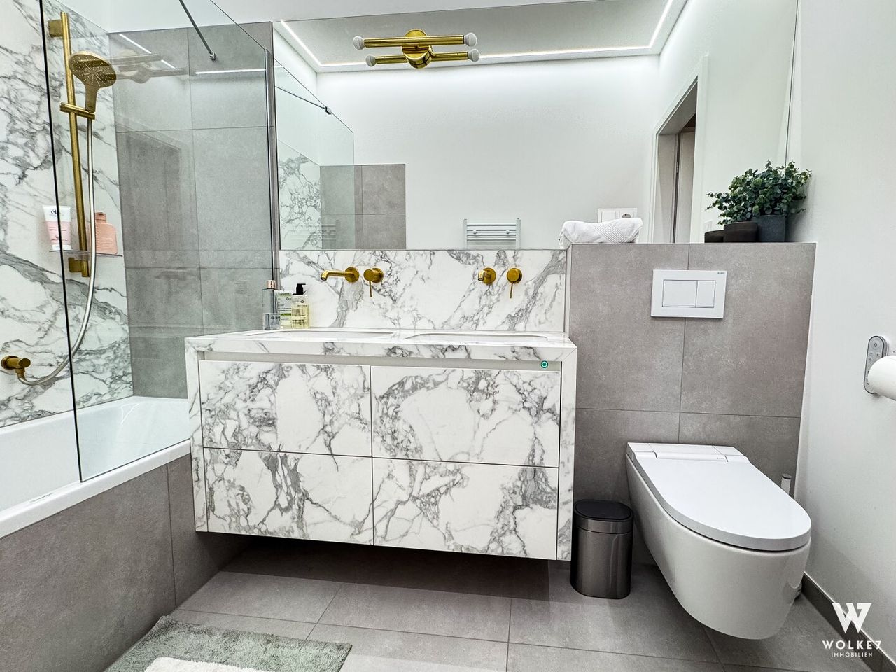 Zwei stilvoll gestaltete Badezimmer mit jeweils begehbarer Dusche und WC bieten höchsten Komfort und Privatsphäre – ideal für Familien, Paare mit Anspruch oder repräsentatives Wohnen. Ein zusätzliches separates WC ergänzt das durchdachte Raumkonzept.