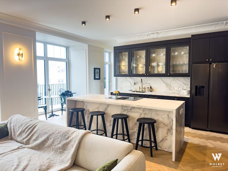 Die Wohnung wurde hochwertig kernsaniert und mit viel Liebe zum Detail ausgestattet. Edler Fischgrätparkett, elegante Wand- und Deckenleisten sowie fein abgestimmte Materialien verleihen den Räumen eine zeitlose, urbane Eleganz.