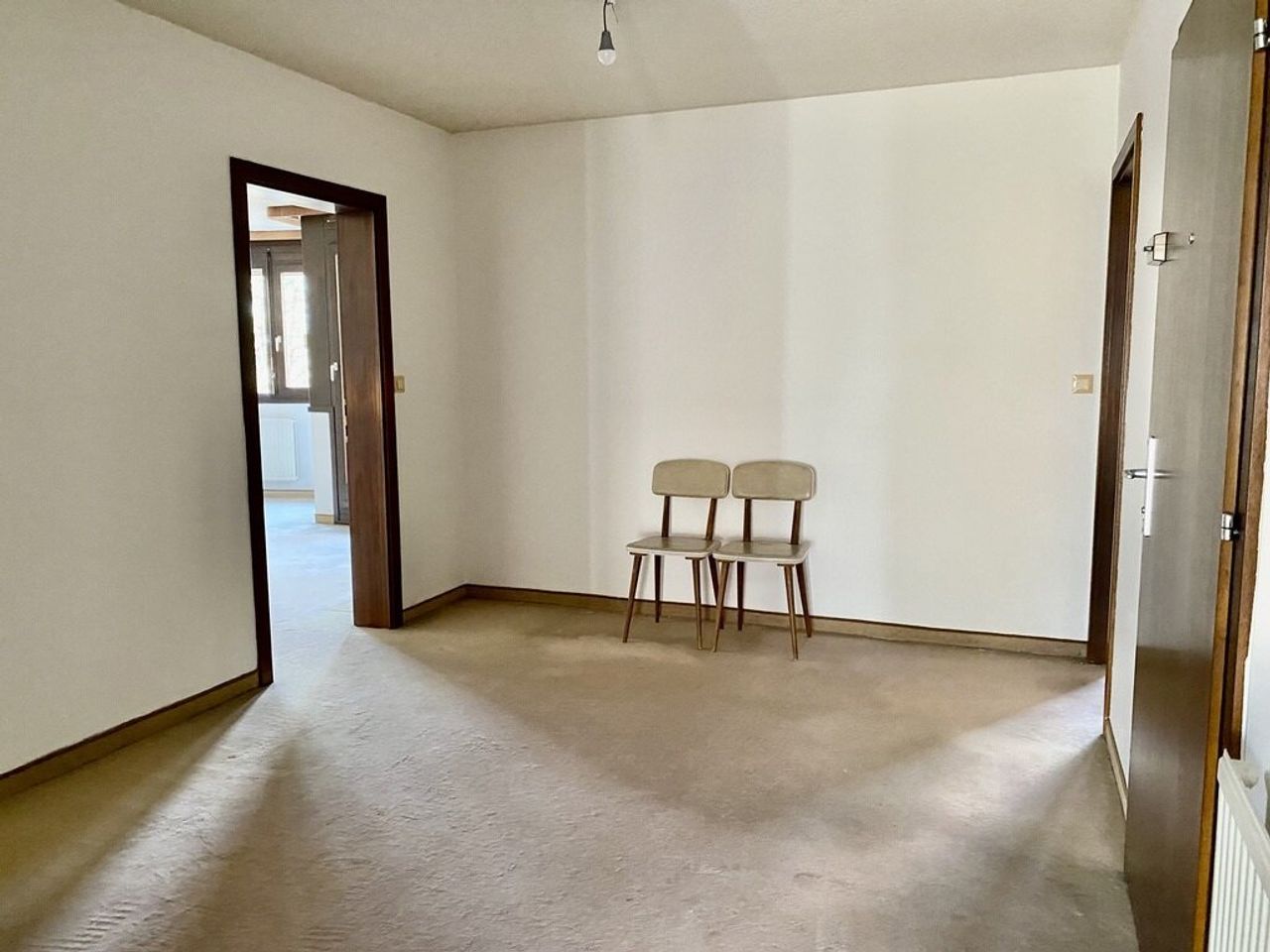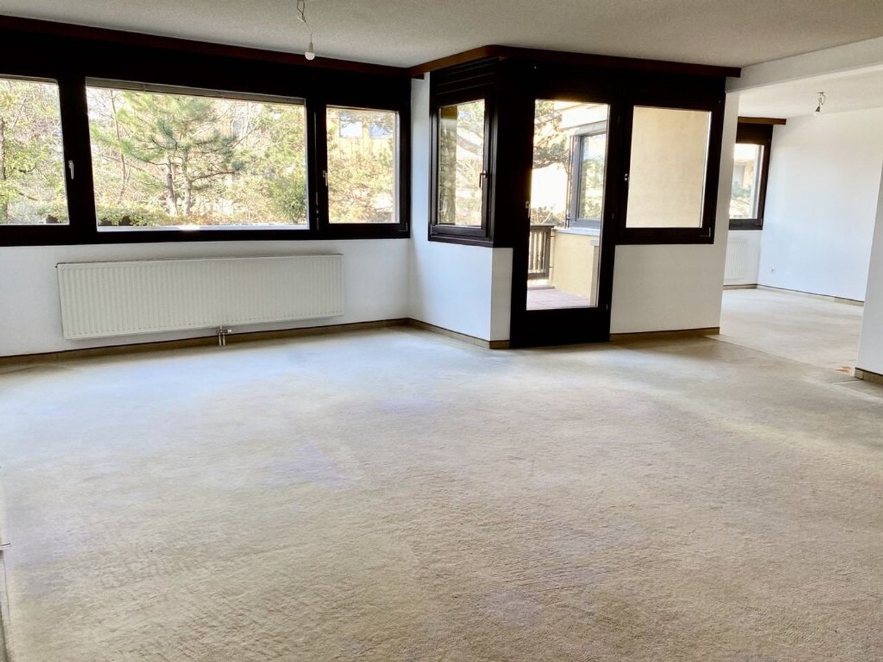Die Wohnung befindet sich in einem gepflegten, jedoch etwas abgewohnten Zustand und ist entsprechend herzurichten. Dafür erhält man in herrlicher Grünlage eine großzügige, ruhige und sehr gut angelegte Wohnung mit zwei Terrassen und Stellplatz.