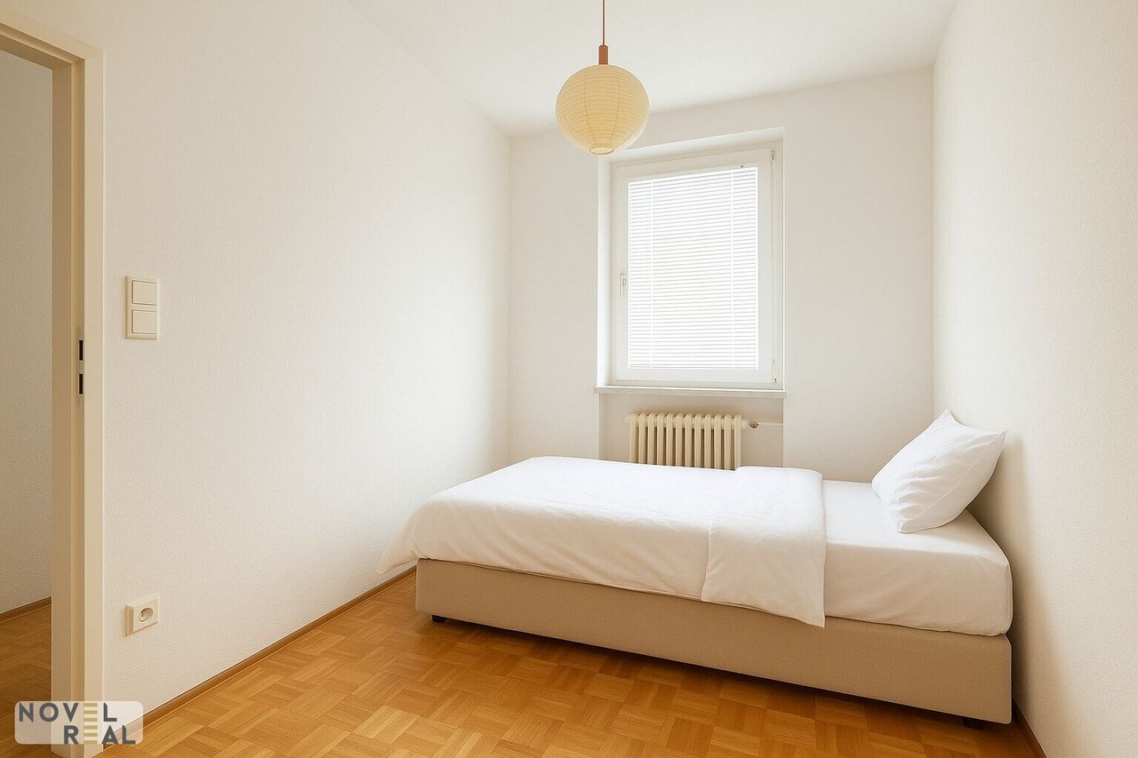 Zwei weitere, kleinere Zimmer eignen sich flexibel als Kinder-, Gäste- oder Arbeitszimmer. Das Badezimmer mit Fenster verfügt über eine Badewanne und bietet Raum für persönliche Wellnessmomente.