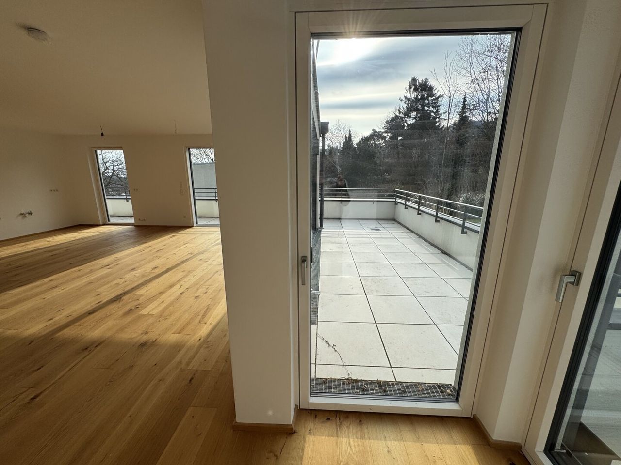 Die exklusive 143 m² große Wohnung verfügt über 58 m² Freiflächen und bietet eine großzügige Wohnküche, drei Schlafzimmer, zwei Bäder (eines davon im Elternschlafzimmer), zwei WCs ( beide separat), einen Schrank- bzw. Arbeitsraum, zwei Vorräume sowie einen Abstellraum. Sowohl von der Wohnküche als auch von allen Schlafzimmern gibt es einen direkten Zugang auf eine Terrasse.