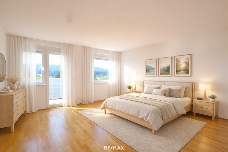Der zweite Vorraumbereich führt zum Masterbedroom mit ca. 22,83 m², welches durch seine Größe und den direkten Zugang zur Südterrasse überzeugt.