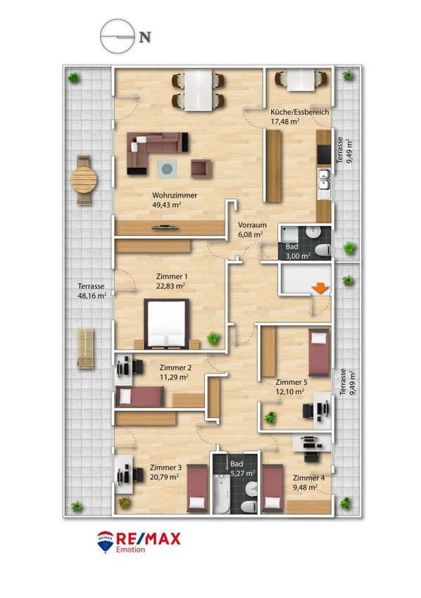 • zwei weitere Terrassen mit jeweils ca. 9,49 m²
