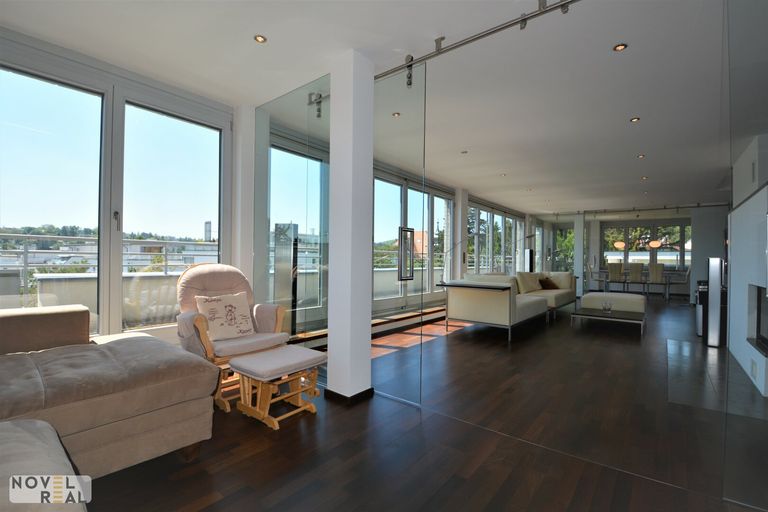 Die außergewöhnliche Immobilie ist auf zwei Ebenen mit einer Gesamtfläche von 302m² aufgeteilt. Eine wunderbare Dachterrasse fasziniert mit einem traumhaften Rundumblick.