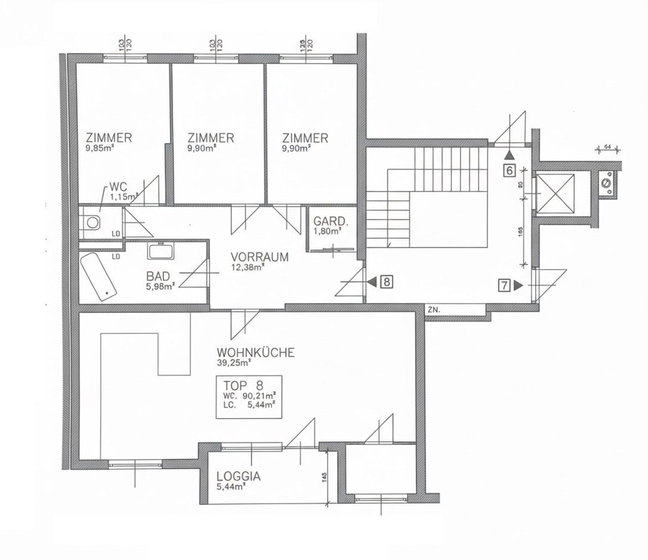 Willkommen in Ihrem neuen Zuhause in Döbling, einem Ort, an dem modernisiertes Wohnambiente auf erstklassige Lage trifft! Diese wunderschöne Wohnung im 2. Liftstock bietet Ihnen auf großzügigen 90,21 m² zuzüglich der 5,44m² Loggia alles, was das Herz begehrt. Die Wohnung besteht aus einem großen Vorraum, einem geräumigen Wohnraum mit moderner offener Küche und Zugang zur Loggia, sowie 3 hofseitigen Zimmern, einem Bad mit Eckwanne, einem WC und einem Abstellraum.