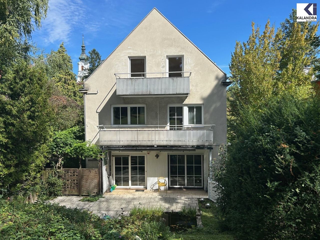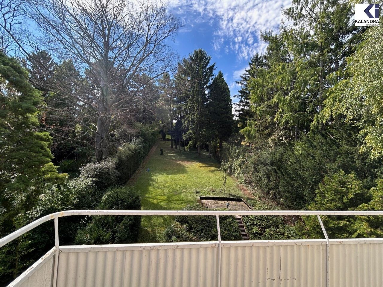 Hinter dem Haus befindet sich ein ansteigender, über 1.000m² großer, romantischer Garten, der parzelliert wurde und von dem jeder Wohnung ein Teil zugeordnet ist.