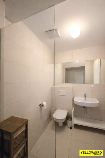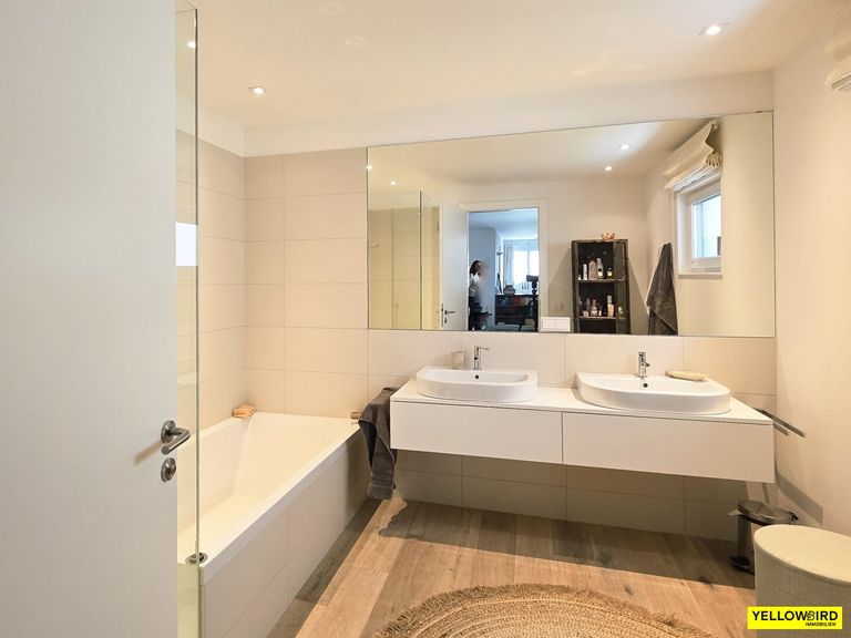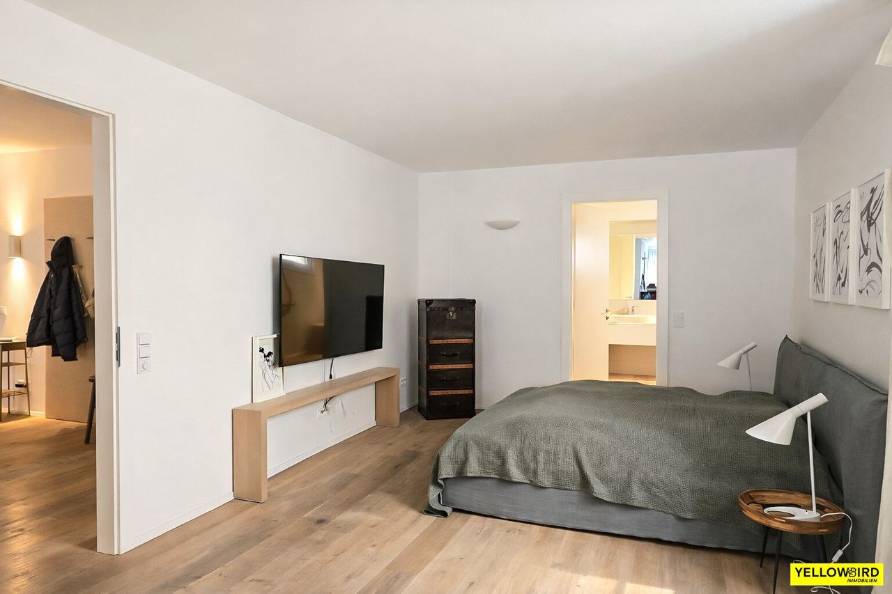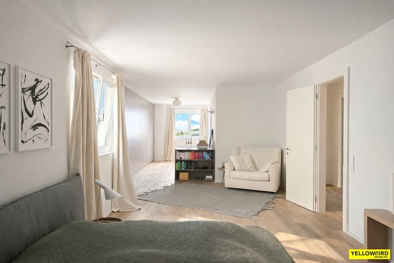 Die Wohnung unterteil sich in ein sehr großzügiges Wohn / Esszimmer (62m2) mit offener Küche, ausreichend Platz für eine Garderobe im Eingangsbereich, ein Schlafzimmer mit eigenem kleinen Bad mit WC/DUSCHE sowie einen über 42m2 großen Masterbedroom Bereich (dies war als 2 Zimmer geplant, wurde so angepasst) mit eigenem großen Badezimmer mit Dusche/Badewanne/Doppelwaschbecken.