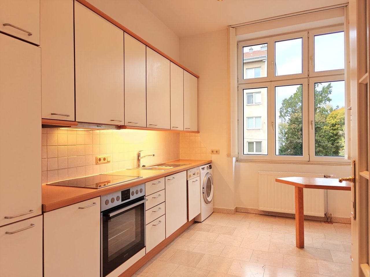 + Küche mit voll ausgestatteter Küchenzeile, Esstisch und Nordfenster
