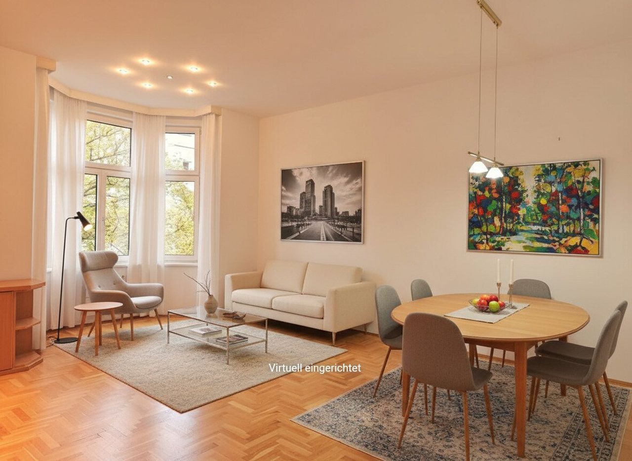 + Großzügiges Wohnzimmer mit charmantem Erker Richtung Norden