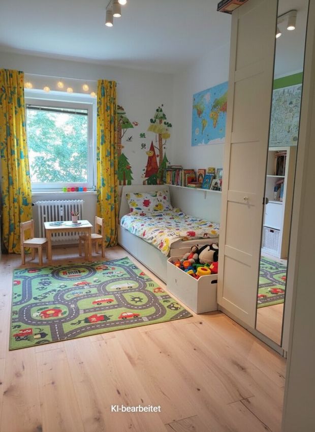 • Holzfußboden (Parkett) in der gesamten Wohnung; Bodenversiegelung und -nivellierung + Fliesen, teils neue Möbel, neue Elektrik; alles neu saniert 2025;