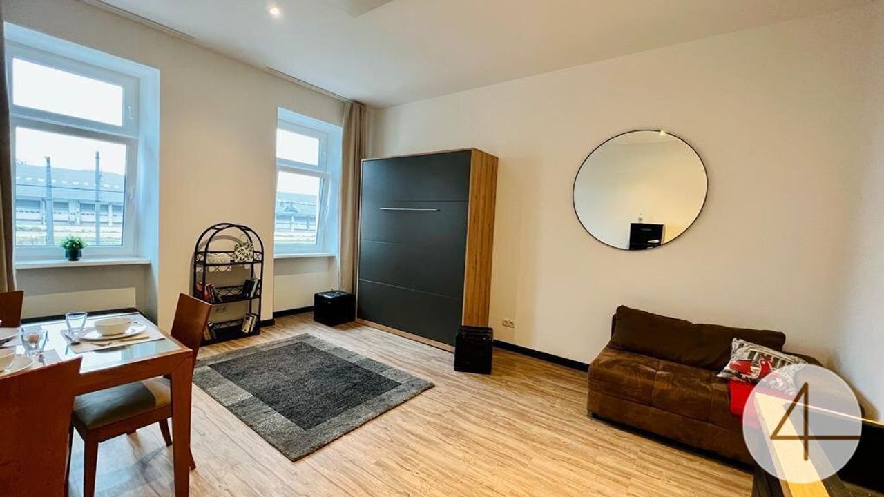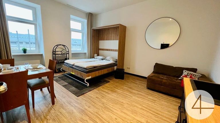 - Wohn-/Schlafzimmer mit Essplatz und smarter Bett-Lösung