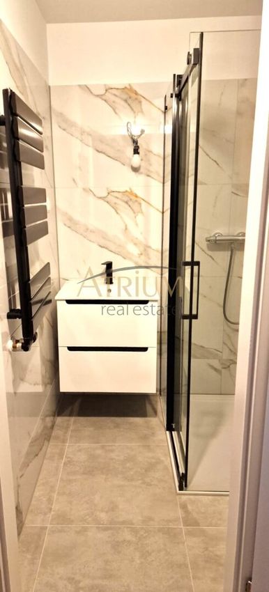 - Handtuchtrockner und Waschmaschinenanschluss in der Dusche