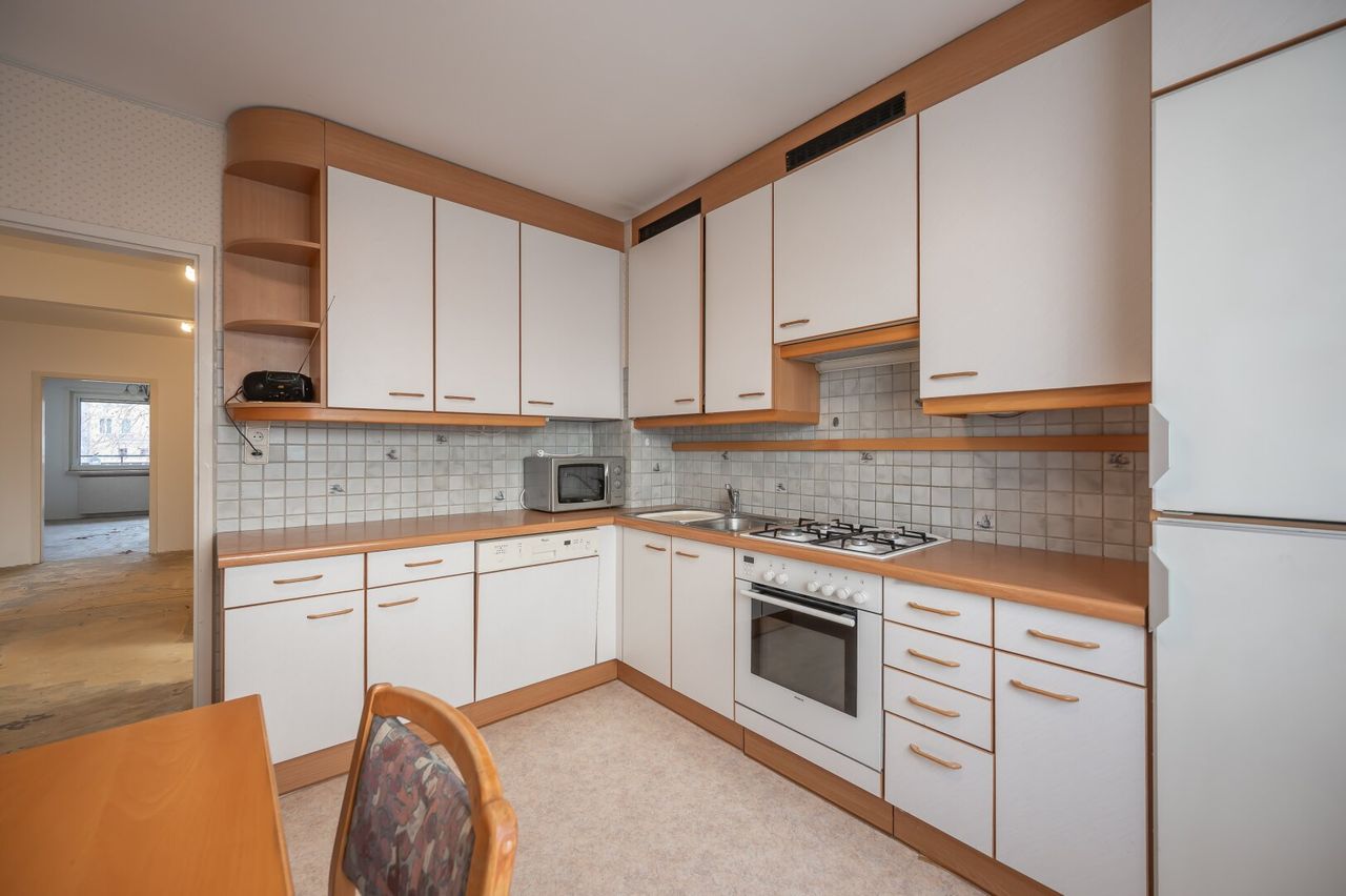 Die Wohnung befindet sich in einem gebrauchten Allgemeinzustand und könnte durch wenige Arbeiten (Böden, Fliesen) wieder in neuem Glanz erstrahlen.