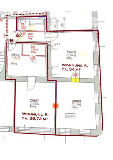 Wohnung A: ca. 54 m²