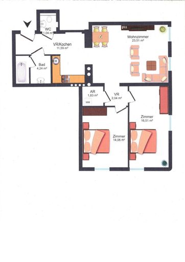 Abstellraum (1,83m²) ist der Wohnung zugeordnet.