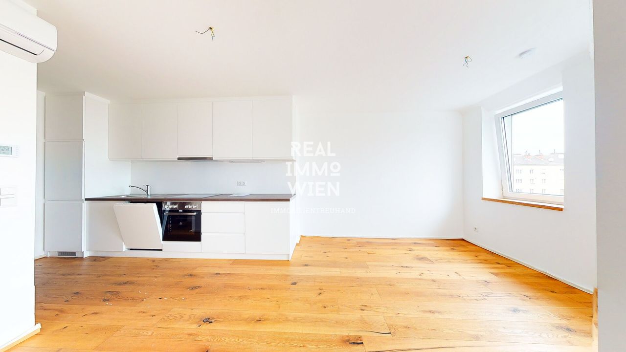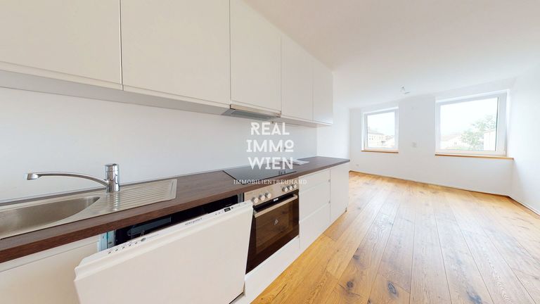Die Wohnung überzeugt durch eine hochmoderne Einbauküche, qualitativ hochwertige Parkettböden sowie stilvoll verflieste Sanitärräume.