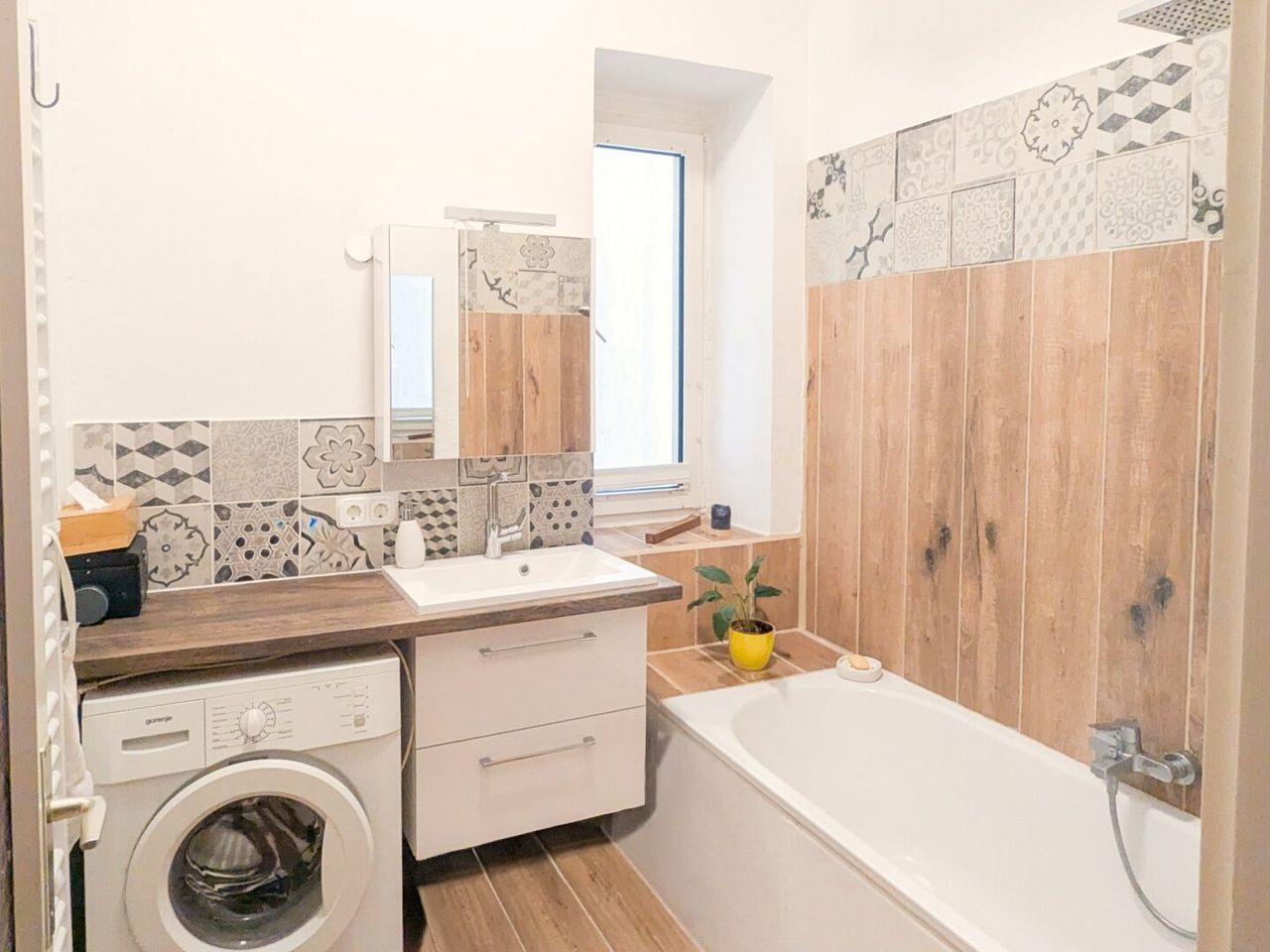 + Bad mit Wanne, Waschmaschinenplatz und Waschtisch