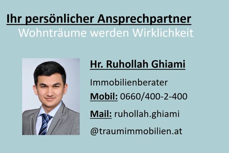 Herr Ruhollah Ghiami, Traumimmobilien.at - Engl Immobilien GmbH, 9201 Krumpendorf, Südbahnweg 47, Tel: 0043 (660) 400-2-400 Mail: ruhollah.ghiami@traumimmobilien.at.