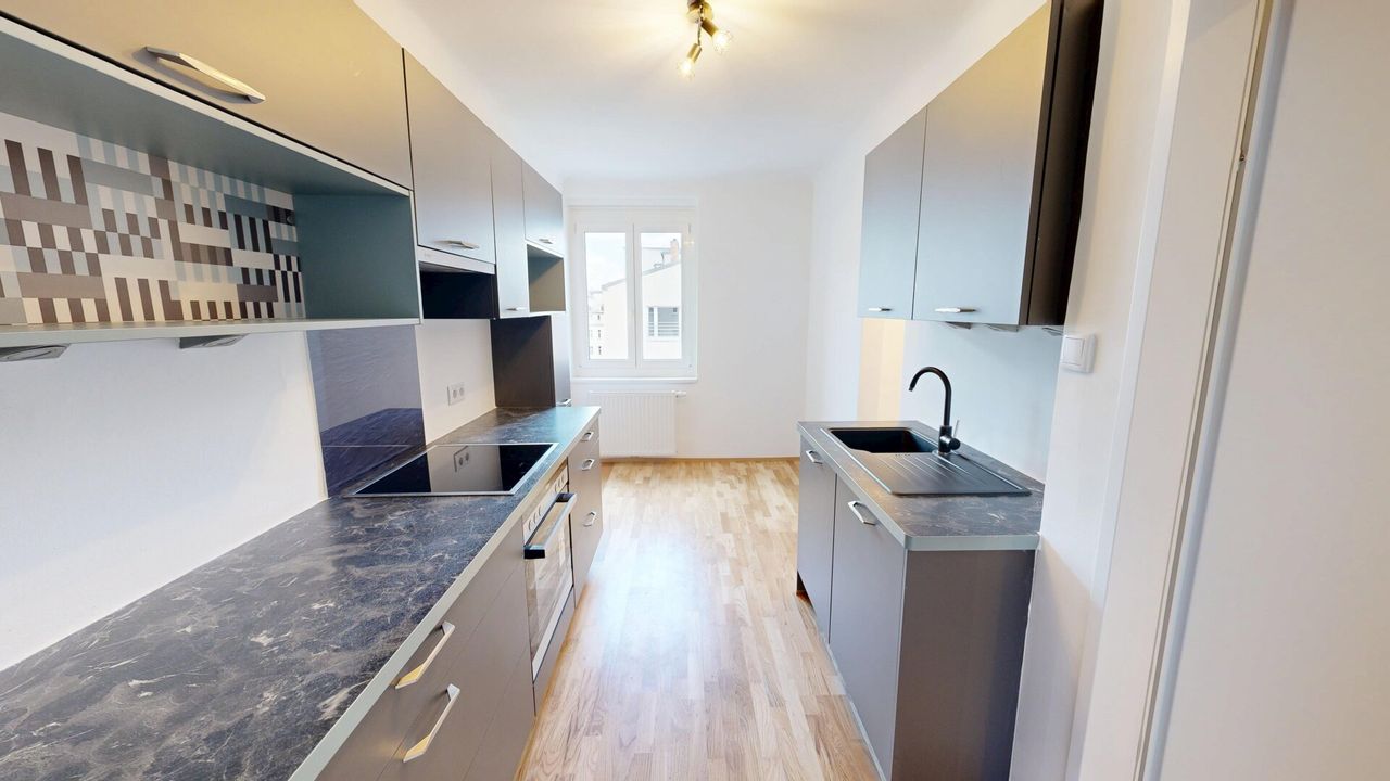 Diese moderne, 2026 umfassend modernisierte 2-Zimmer-Wohnung befindet sich im 4. Liftstock eines gepflegten Wohnhauses aus ca. 1950 in zentraler Lage am Floridsdorfer Spitz. Auf rund 71,6 m² Wohnfläche bietet die Wohnung eine durchdachte Raumaufteilung sowie eine verglaste Loggia mit Stadtblick.