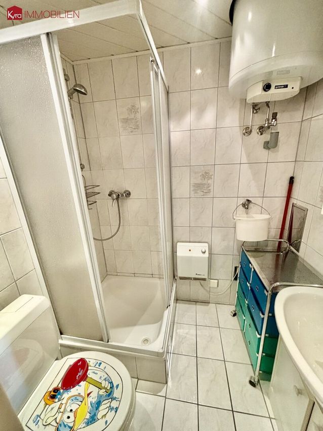 Der helle Wohnraum ist mit hochwertigem Laminat ausgelegt und schafft eine warme Atmosphäre, die zum Wohlfühlen einlädt. Die Einbauküche ist perfekt für die Zubereitung Ihrer Lieblingsgerichte gestaltet und bietet ausreichend Stauraum sowie alle notwendigen Elektrogeräte. Das gepflegte Badezimmer ist mit einer Dusche ausgestattet und verfügt über ein WC, sodass Komfort und Funktionalität hier Hand in Hand gehen. Stilvolle Fliesen runden das Gesamtbild ab und sorgen für ein sauberes und gepflegtes Erscheinungsbild.