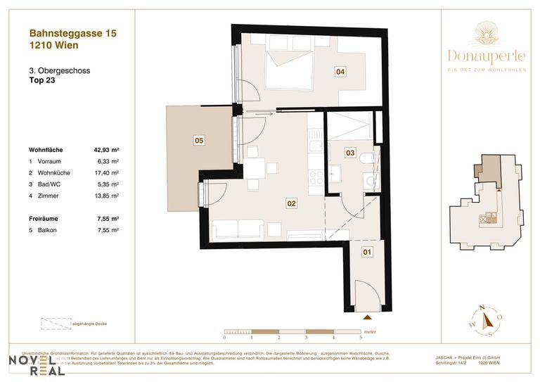 Das Vermittlungshonorar ist ausschließlich bei Zustandekommen eines gültigen Rechtsgeschäfts fällig und vom Käufer an Novel Real Immobilien GmbH zu zahlen. Es wird ausdrücklich auf die Nebenkostenübersicht hingewiesen. Bei den Visualisierungen und Abbildungen der Immobilie (insbesondere von Inneneinrichtungen) kann es sich um Symbolfotos bzw. fototechnisch optimierte Fotos handeln.