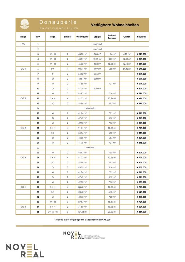 Die Aufstellung der verfügbaren Wohneinheiten samt Kaufpreisen finden Sie auch in entsprechenden pdf-Datei.