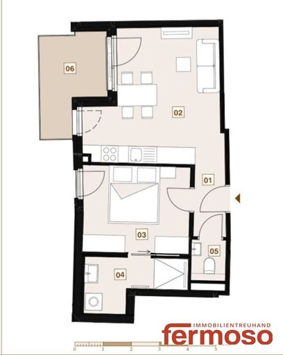 Auf rund 41,76 m² Wohnfläche erwarten Sie helle, gut geschnittene Räume mit großen Fenstern und angenehmem Tageslicht. Der offene Wohn-/Essbereich schafft eine freundliche Atmosphäre, in der man sich sofort wohlfühlt.